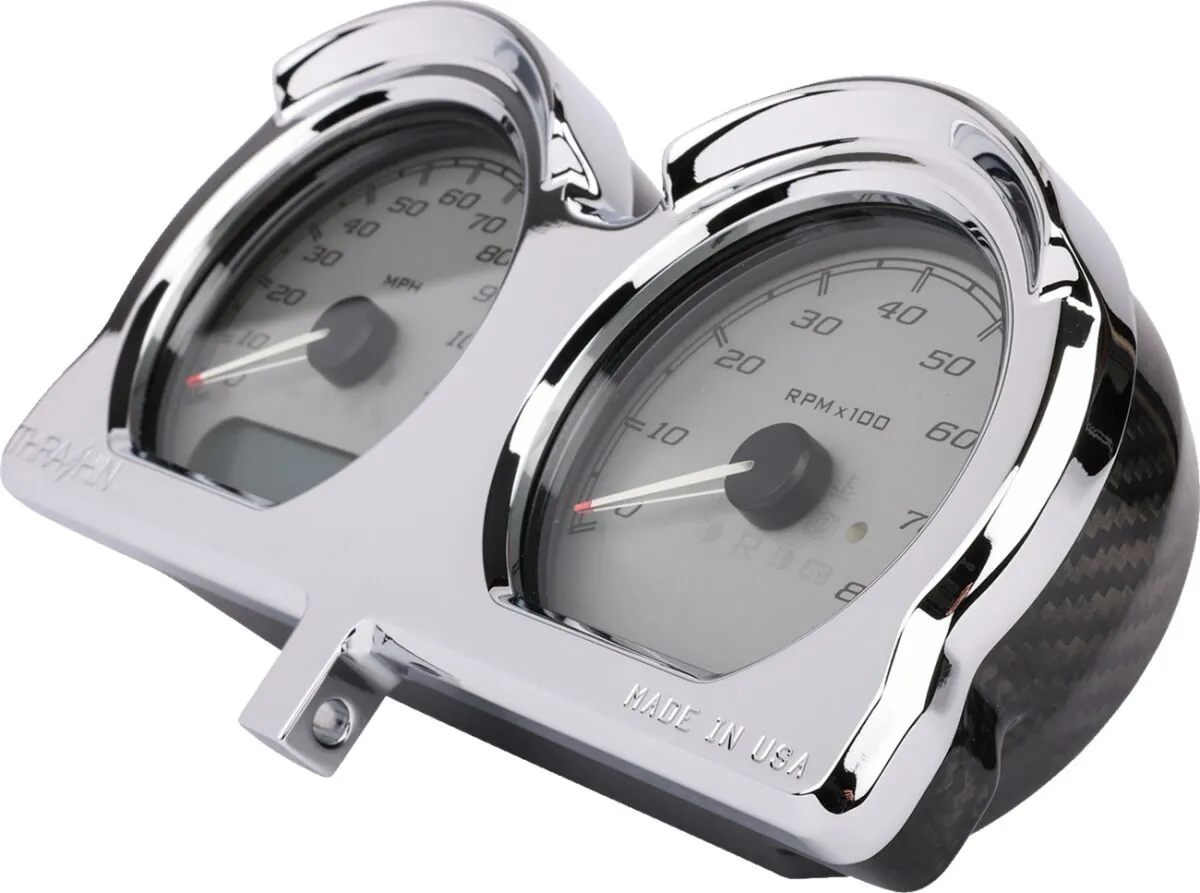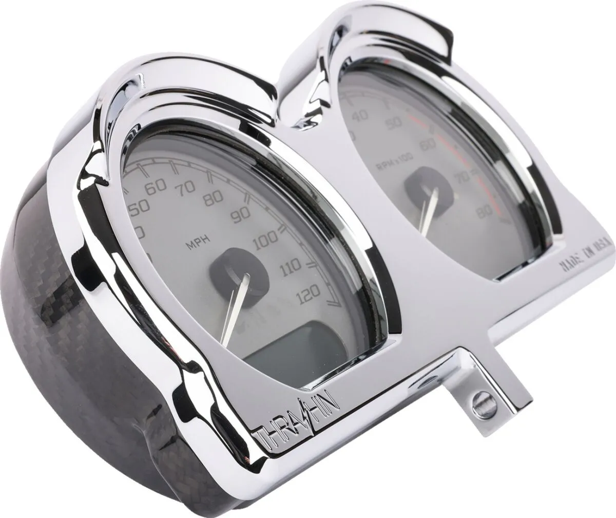 ×2014-2023 Road Glide? Thrashin have the best gauge relocation setup for you. Starting out by merging two of the highest quality materials, REAL Carbon Fiber and billet 6061 air-craft grade aluminum to bring you the lightest gauge relocation for your Road Glide.