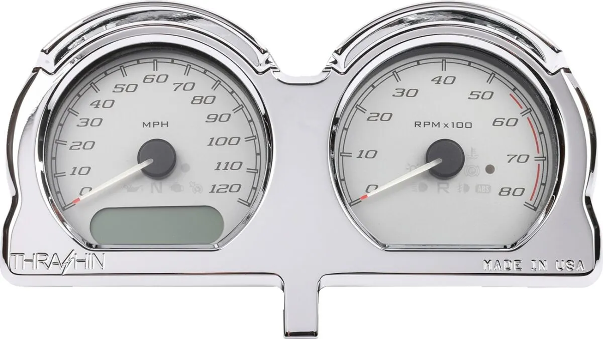 This Road Glide speedo gauge relocation kit fits your gauges to the risers giving adjustability for the perfect position. This kit deletes the stock speedo housing and factory fork lock ignition setup and requires the additional purchase of the Thrashin Top Triple tree. Ignition Switch delete programming is required by your local Harley dealership. The OEM brake and clutch perch will also need to be replaced when using aftermarket bars, Thrashin part number TSC-2703-4 / TSC-2703-3