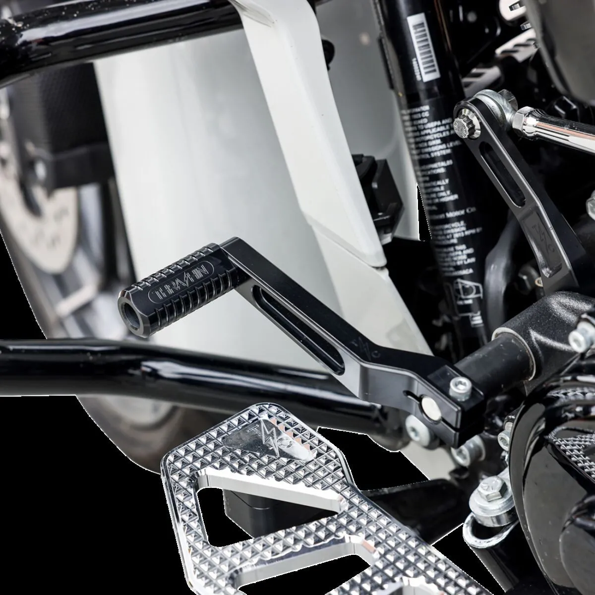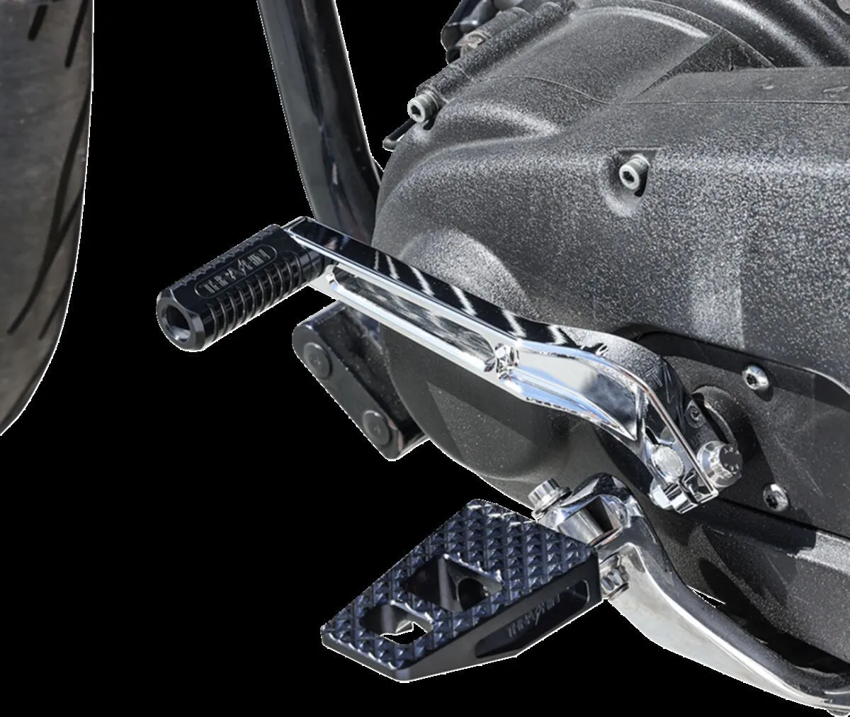 Shifter peg can also be used as a brake pedal on Thrashin Softail billet brake arm; part # TSC-2300-1 and TSC-2300-3. Not compatible with adjustable bagger brake arm.