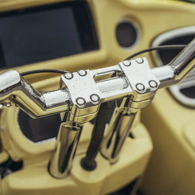 Note: This is a universal part, but individual applications may vary. Some handlebars require 1” clamps while others require 1.25” clamps. Please check your specific setup before ordering to ensure proper fitment.