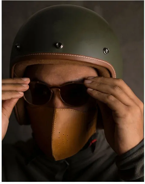 ×The Trip Machine leather facemask is the way of keeping everyday simple and classy. The design of the mask is minimal keeping everyday wear in mind even without a helmet. Used 100% organic cotton at the back to make it easy on the skin. the drawstring design doesn't rest on the ears enabling the mask to stay on the face especially when wearing a helmet. Every mask comes with 3 interchangeable and washable filters making the mask reusable for a very long time. The filter is made up of 3 layers of organic cotton cloth and stays intact behind the leather cover. A perfect companion for the cold winter rides as well.