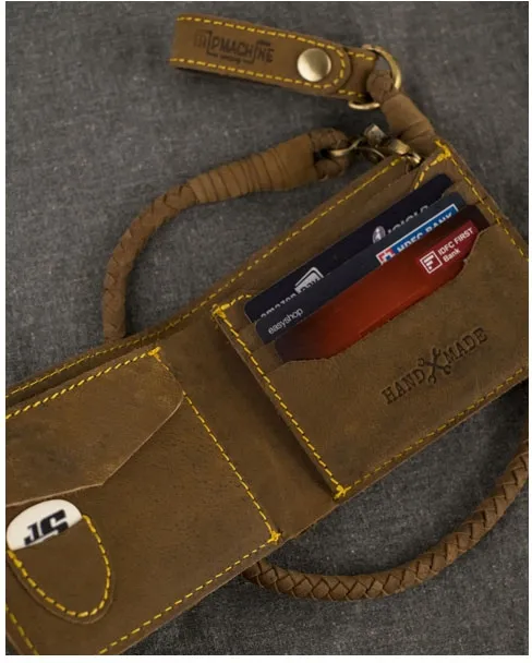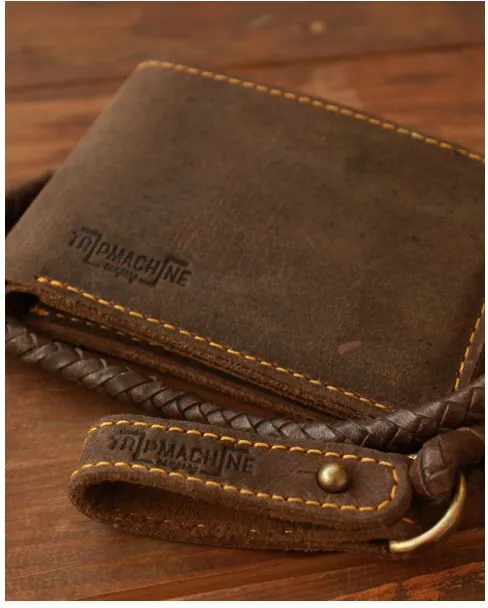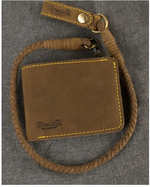 ×The Trip Machine Guitarist wallet is handmade the traditional way with no compromises from the first cut to the last stitch. Made of the highest quality leather that is built to last a lifetime and gets better as it ages. Comes with a stylish removable leather braid for added protection and style. Detailed specs: main compartment for money and bills, 3 card slots, 2 side slots for the remaining cards, coin pocket. Nice detail: has a plectrum pocket for those who can''t live without their music.