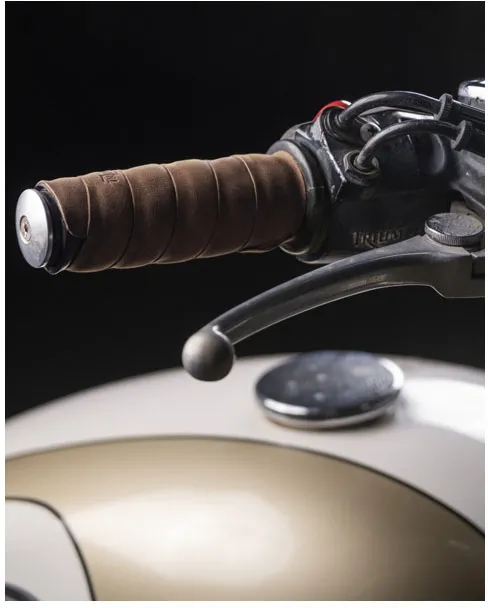 ×Handlebar grip wraps are handmade from genuine leather and used to considerably reduce handlebar vibrations while giving your motorcycle a classy vintage feel. Improves grip, especially while wearing gloves. Install is simple and comes with 3M heavy duty adhesive tape for a non-slip install. How to wrap the grips:- Remove part of the tape cover and start wrapping by placing the thin end of the grip on the far end of the handlebar - Pess the grip so that it sticks and start wrapping by removing a part of the tape cover as you go - Wrap till the near end and cut the extra grip if necessary with a knife or a blade - Seal the end using the extra glue provided in the box - Enjoy your ride!