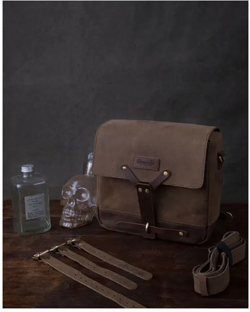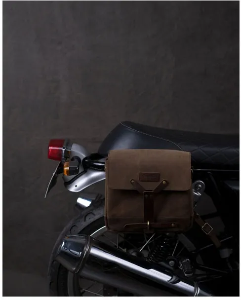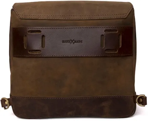 Inspired from the Swiss ammunition bag of the second world war. Two small pockets on the inside. Handmade classic from 100% virtually indestructible 2.5mm harness Heavy Duty leather and built to last. It has been treated to give it a distinctive, weathered look that will only get better with age. With the adaptable universal mount system it is On/Off the bike in seconds and it carries comfortable on your shoulder. A roomy pocket crafted from premium suede allows you to keep things organized. A perfect everyday satchel. Dimensions: 26cm x 23.5cm x 11cm.
