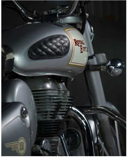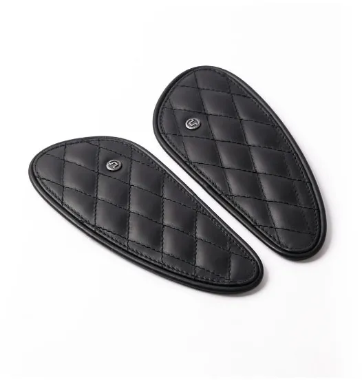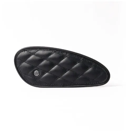 Handmade leather fuel tank pad set. Designed to replace standard tank pads or use them in other custom applications to enhance the visual appeal of your bike. Handmade from signature Trip Machine''s crunch (extra subtle) genuine leather. These will last well when maintained. Comes with industrial standard 3M tape installed to ensure the tank pads that will not damage your motorcycle paint and stay in place. Sold as a left & right set. Dimensions: 18.5cm long x 7.5cm high x 0.8cm thick. Note: Old rubber pads can be removed by applying moderate heat so the glue will get soft and the pad can be removed. Take your time. When applying too much heat paint or pads may be damaged. Contact a professional when in doubt.
