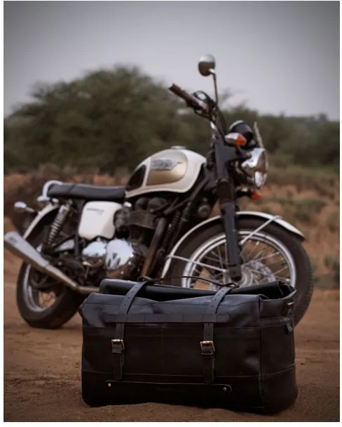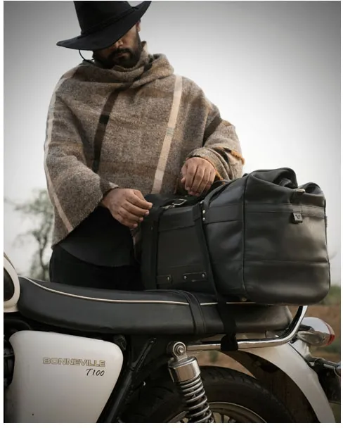 ×The duffle bag is a proven concept, with maximum storage capacity being the most important feature, so perfect for on a motorcycle. Another thing of importance is strength, life on a bike is hard, even more so for large capacity bags since they tend to hold a lot of gear. Rest assured, this is of the highest quality, handmade from 100% genuine heavy duty leather and built to last! Perfect for the long road trips where you don''t want your gear to fail half way. Added feature is the classic roll top design, allowing you to expand the storage space when needed to maximum capacity without it getting ''floppy'' when not fully loaded. Four quick-access pockets are present for essentials. A top zipper to allows you to lock your valuables in the main storage compartment. The leather shoulder strap makes it easy to carry your gear with you when off-bike heading for a bar, tent, motel etc. Comes with universal custom mounts and a rain cover.