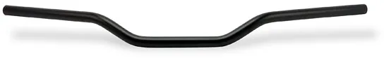 Black powder coated steel handlebar, ABE approved, Approx. dimensions: 755mm wide x 42mm rise x 140mm pullback. Manufactured from quality steel tubing with a 2mm wall thickness. ABE approval insures quality and street legality in various countries. Note: With approval. Check your local MCS dealer or the MCS sales department for exact type of approval and validity on bike model and years on the test report.