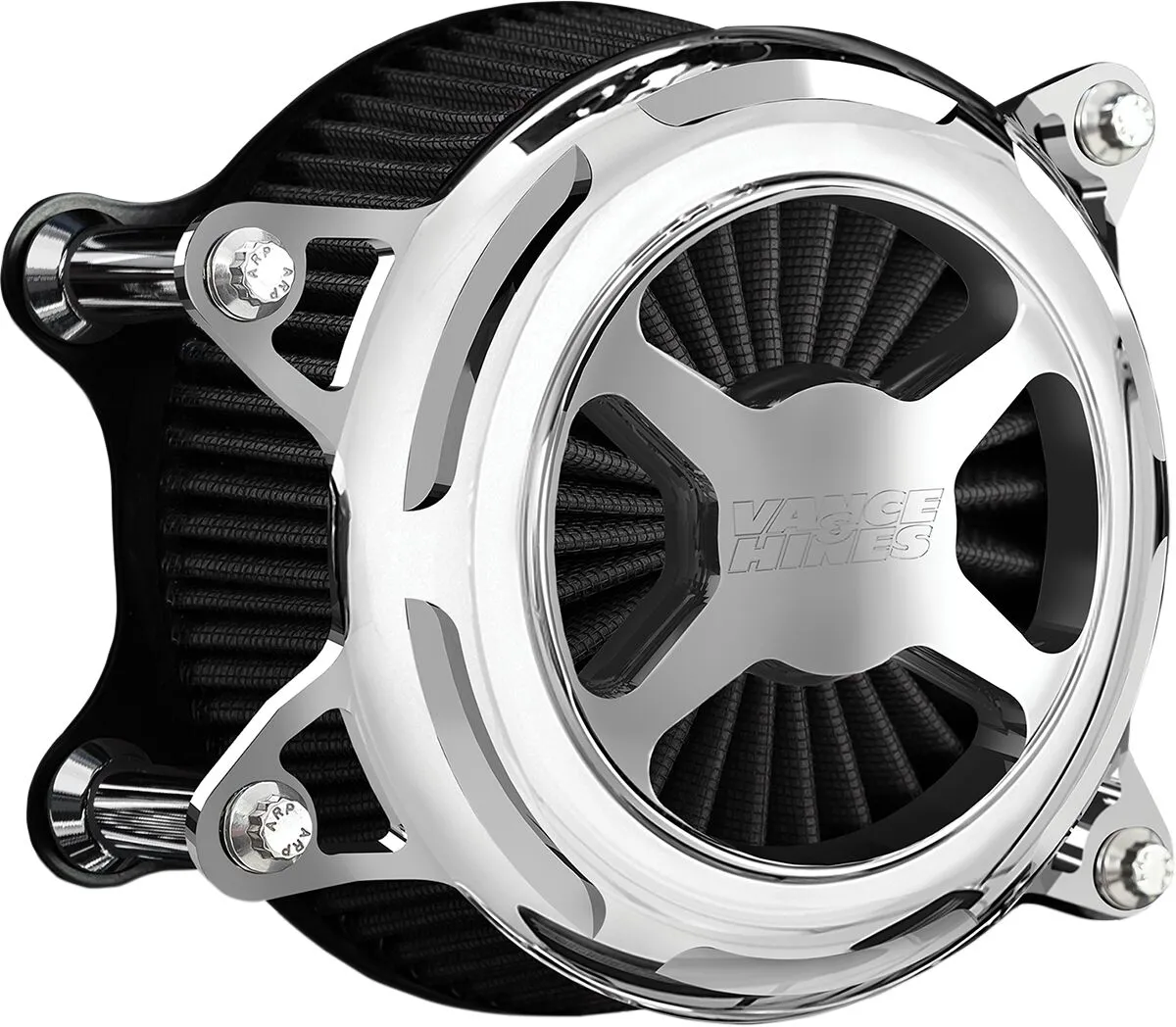 Model: VO2 Base Color: Silver Product Name: Air Cleaner Design: X Features: Reusable| Washable Filter Media Material: Paper Color/Finish: Chrome Units: Each Material: CNC Billet Aluminum