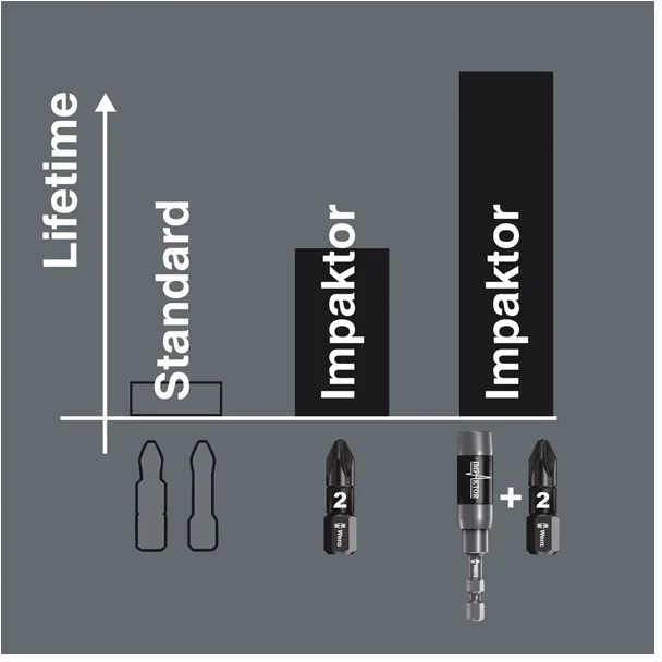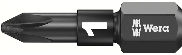 ×1/4" drive, 25mm long. Diamond coated bit head to prevent slipping. Compatible with impact drivers. Compatible with 1/4" drive DIN ISO 1173-C 6.3 bit holders. Color coded for head style (Black = Pozidriv) and printed for size. Series 855/1 IMP DC - Pozidriv Impaktor bits. Size: PZ1.