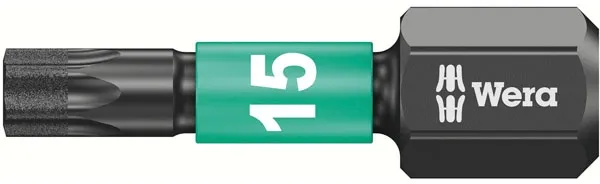 ×1/4" drive, 25mm long. Diamond coated bit head to prevent slipping. Compatible with impact drivers. Compatible with 1/4" drive DIN ISO 1173-C 6.3 bit holders. Color coded for head style (Green = Torxr) and printed for size. Series 867/1 IMP DC - Torxr Impaktor bits. Size: TX15.