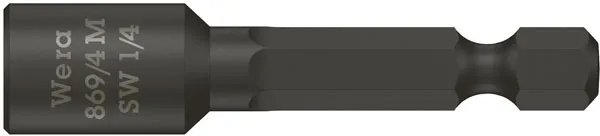 ×869-4 M. For hex bolts and nuts. Compatible with 1/4" drive DIN ISO 1173-F 6.3 bit holders. Magnetic. Overall length 50mm. Size: 1/4".