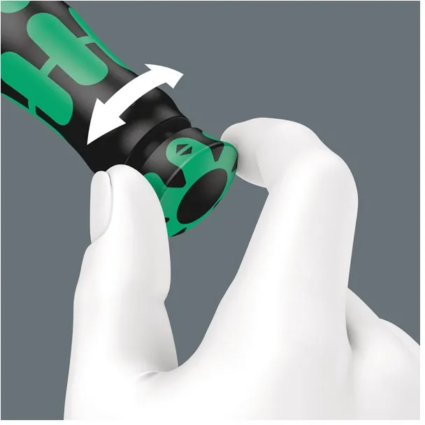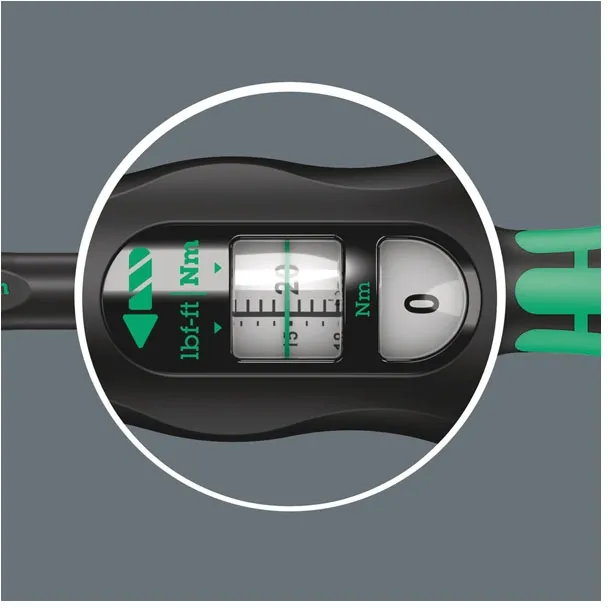×Robust 3/8" drive torque wrench and a switch reversible ratcheting wrench in one, with pushbutton socket release. Torque control in clockwise direction only. When the pre-set torque value is reached you will both feel and hear it click. Torque readings in Nm and lbf. ft. Precision scale shows Nm only. Precision 3% of set value, as per DIN EN ISO 6789-1: 2017-07. Ratcheting direction is controlled by the flip of a switch, the 45 teeth ratchet design allows a 8 return angle. Comes with the Wera 2-component ergonomic Kraftform handle. Click-Torque B 2. 20-100 Nm (15-73 lbf. ft.). Overall length 405mm. Head width 43mm. Weight 1249 gram.
