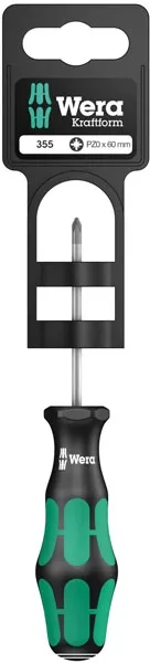 ×Series 300 Pozidriv screwdriver. With multi-component Kraftform handle. Shaft: Round throughout. Tip size: PZ0. Shaft length: 60mm.