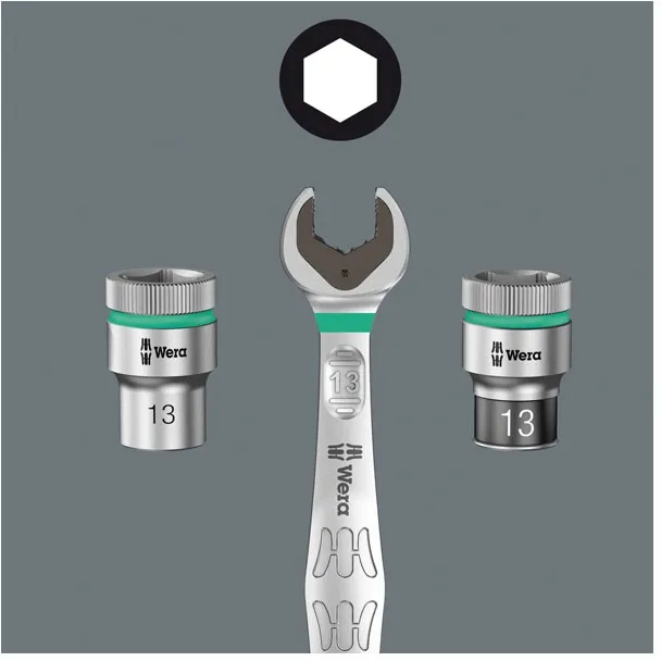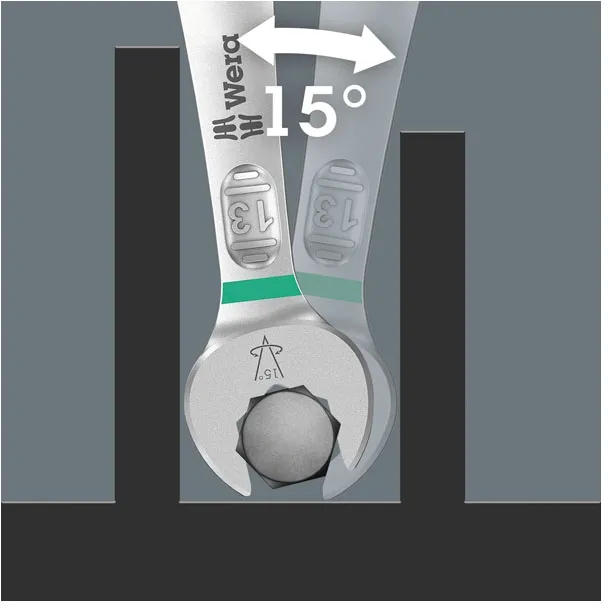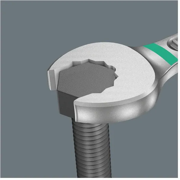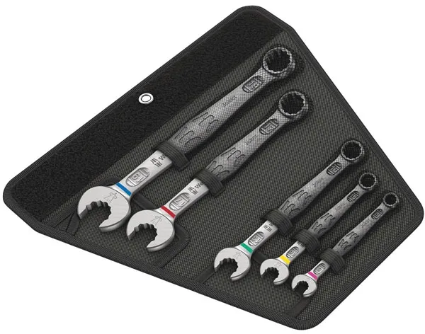 ×The 6003 series short Joker in 5-piece wrench set. Comes with 8mm x 115 long, 10mm x 125 long, 1x 13mm x 160mm long, 17mm x 190mm long and 19mm x 230mm long Jokers. With an open end on one side and a ratcheting box end on the other side. With identical sizes on both ends. Complete in a robust fold-up textile pouch to helps to keep things organized in virtually all havoc wrenching situations. Includes 5 metric Joker wrenches in the ''short'' version for best access in confined spaces in most used sizes. Note: Open end - The Joker has a non-angled 12-point beak, therefore it requires just 30 of working space, otherwise it functions just like a regular open end wrench. The dark metal plate dual functions as a retainer, preventing the nut to slip through the wrench beak or it holds the nut. 30 further the metal retainer plate allows the nut to slide through, or grip it since the metal plate is equipped with a hardened ragged edge. The teeth of this edge will ''bite'' itself into a rounded-off nut, loosening it where others do nothing but slip-off. Note: Box end - Comes with a very fine 80 tooth ratchet for a small 4.5 return angle. Ratcheting direction is indicated on both sides.