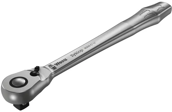 ×1/2" drive x 281mm long. Forged chromoly full metal ratchet. Very robust with a slim-head design for small spaces, ratchet head width is just 39mm. With pushbutton socket release, a switch for ratcheting direction and a fine ratchet tooth design allowing a small 5 return angle.