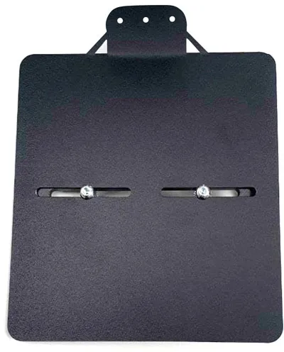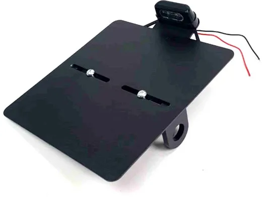 ×Black. For German license plates measuring 180mm x 200mm. Not designed for use with a taillight. License plate illumination must be ordered separately as 943294. Made from 1.5mm thick steel, with a black wrinkle powder coated finish. For left and right side use. The horizontal elongated mounting holes allow further horizontal adjustments for a snug fit on the bike. The L-shaped mount bracket is 35mm wide and made of 6mm thick steel. Note: Not designed for installation of a taillight. Note: License plate illumination light is not included and can be ordered separately as 943294.