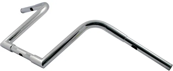 Color/Finish: Chrome Product Name: Handlebar Type/Bend: Ape Hanger| Outlaw Z End Rise: 30,5 cm (12") Base Finish: Chrome Base Color: Silver Clamping Diameter: 25,4 mm (1") Center Width: 24 cm (9-1/2") Handlebar Diameter: 32 mm (1-1/4") Width: 84 cm (33") Rise: 30,5 cm (12") Features: Knurled Center| Notched for Throttle-By-Wire| Pre-Drilled Material: Stainless Steel Pullback/Sweep: 23 cm (9") Units: Each Controls Diameter: 25,4 mm (1")