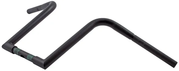 End Rise: 35,5 cm (14") Center Width: 24 cm (9-1/2") Features: Knurled Center| Notched for Throttle By Wire| Pre-Drilled Pullback/Sweep: 23 cm (9") Width: 84 cm (33") Base Finish: Semi-Gloss Base Color: Black Product Name: Handlebar Material: Stainless Steel Rise: 35,5 cm (14") Type/Bend: Ape Hanger| Outlaw Z Color/Finish: Black| Semi-Gloss Handlebar Diameter: 32 mm (1-1/4") Units: Each Controls Diameter: 25,4 mm (1") Clamping Diameter: 25,4 mm (1")