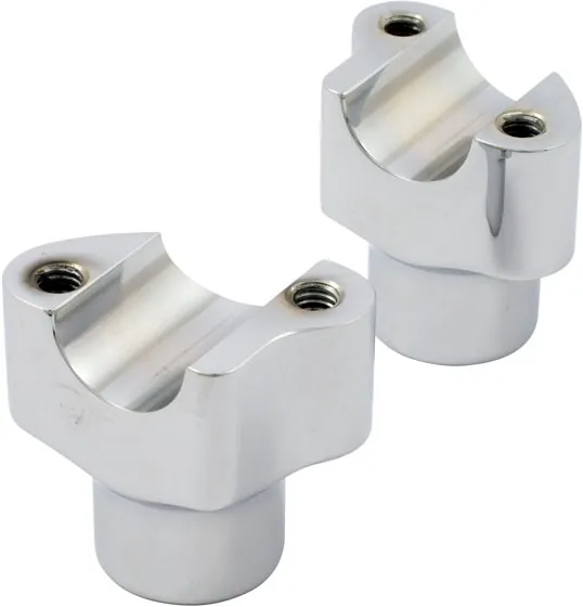 ×Chrome plated billet aluminium. Works with all bars with a 1'' diameter clamp area. Can be used with stock, most aftermarket and Wild 1 billet top clamps with 3.5'' center to center riser spacing. Tapped for standard 1/2''x13 mounting bolts.