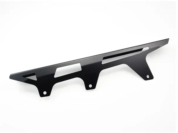 ×A chain guard is made to keep chain grease from being thrown around. It also is designed to catch the chain when it breaks, helping to prevent damage to bike, rider and passenger. The Zieger is both stronger and better looker than the OEM plastic guard. Manufactured from stainless steel with a black powder coated finish. Offers a simple bolt-on installation, directly to the OEM chain guard mounting holes.