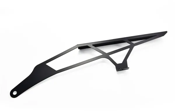×A chain guard is made to keep chain grease from being thrown around. It also is designed to catch the chain when it breaks, helping to prevent damage to bike, rider and passenger. The Zieger is both stronger and better looker than the OEM plastic guard. Manufactured from stainless steel with a black powder coated finish. Offers a simple bolt-on installation, directly to the OEM chain guard mounting holes.
