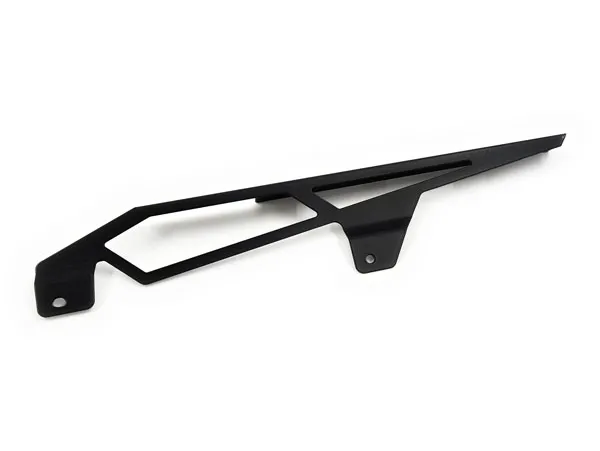 ×A chain guard is made to keep chain grease from being thrown around. It also is designed to catch the chain when it breaks, helping to prevent damage to bike, rider and passenger. The Zieger is both stronger and better looker than the OEM plastic guard. Manufactured from stainless steel with a black powder coated finish. Offers a simple bolt-on installation, directly to the OEM chain guard mounting holes.